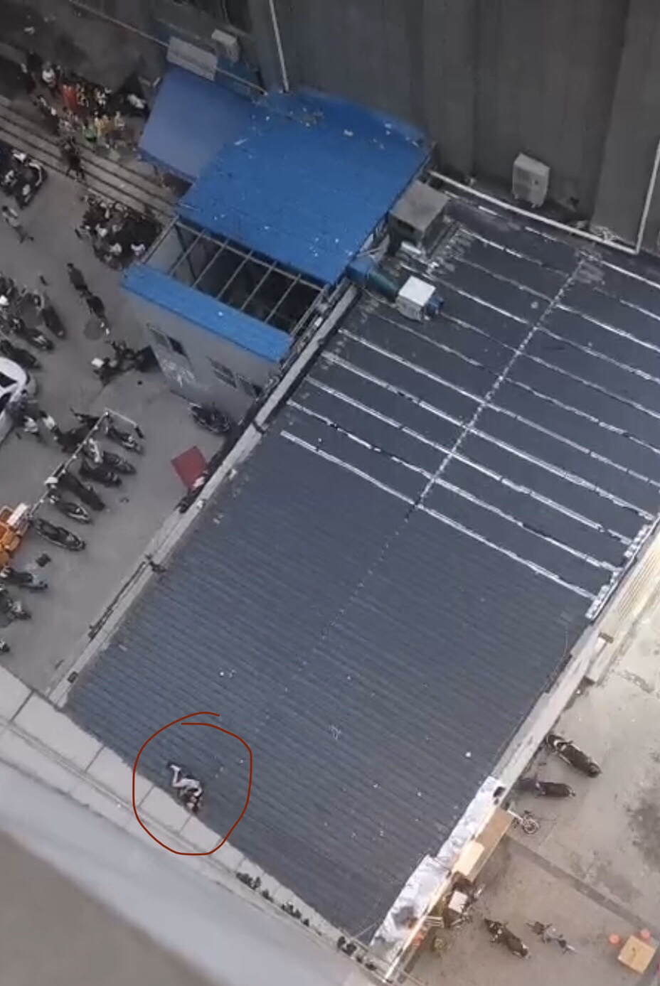6月13日晩上7时许,在郑州市秦岭路与岗坡路交叉口南侧的一个小区里,一名年轻的男子从八楼坠落在二楼平台上,后被消防队员、民警和急救人员救下,送往医院抢救。