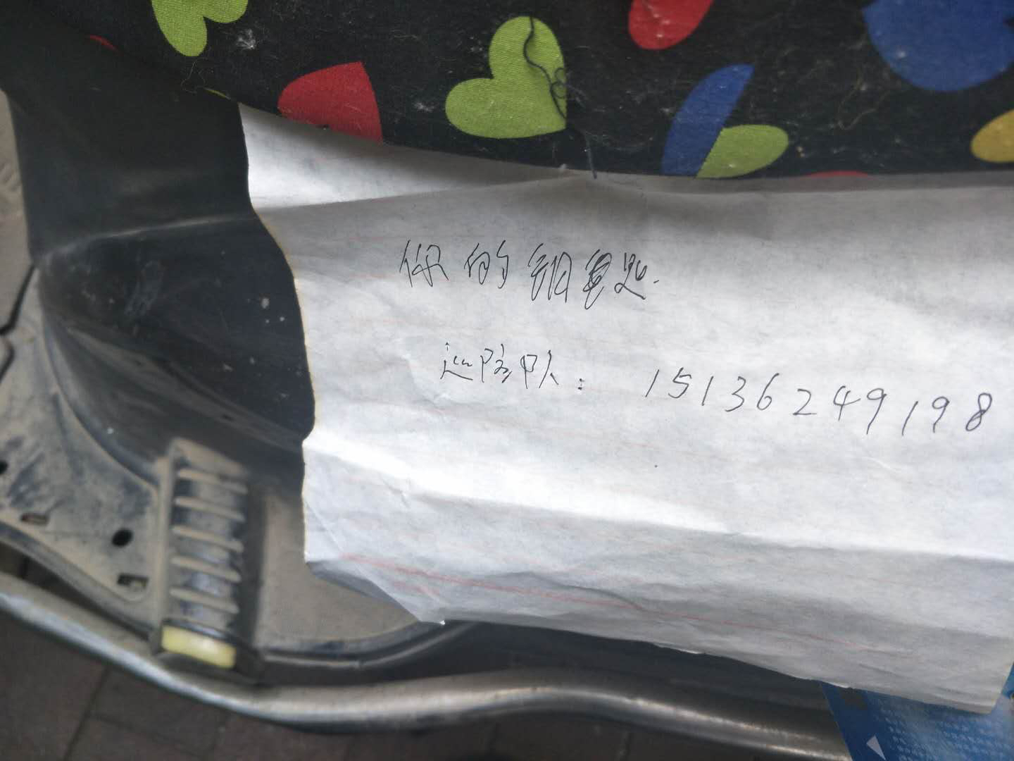 昨天下午,在郑州市经五路上开店的李先生,急匆匆跑到自己的电动自行车前查看,见钥匙不在车上,他特别失望。在看到车上的一张纸条后,他脸上顿时乐开了花。