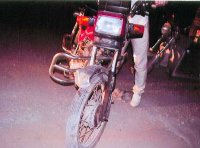 2014年7月22日夜晚10时40分左右,一男子驾驶一辆两轮摩托车沿中牟县城的解放路一路向南狂奔,由于当时的解放路刚刚扩宽改造,尽管路面铺设完毕,但是路灯等各方面配套设施还不完备,就在摩托车狂奔之时,忽然对面过来一辆机动车,在车灯的照射下,摩托车驾驶人眼前一片黑暗,可狂奔的摩托车并没有减速慢行,试图打方向避让机动车。随着“咚”的一声,摩托车与同方向行驶的一辆电动三轮撞在一起,造成两车不同程度损坏,摩托车司机当场昏迷,三轮电动车司机也受了伤。