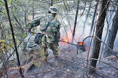 本报安阳讯 记者昨日获悉,5月3日下午4时许,林州市合涧镇发生山林大火,火灾面积400余亩,附近驻训的120余名官兵经过4个多小时的奋力扑救,将大火控制。据悉,火灾原因是电线线路老化,火灾未造成人员受伤。