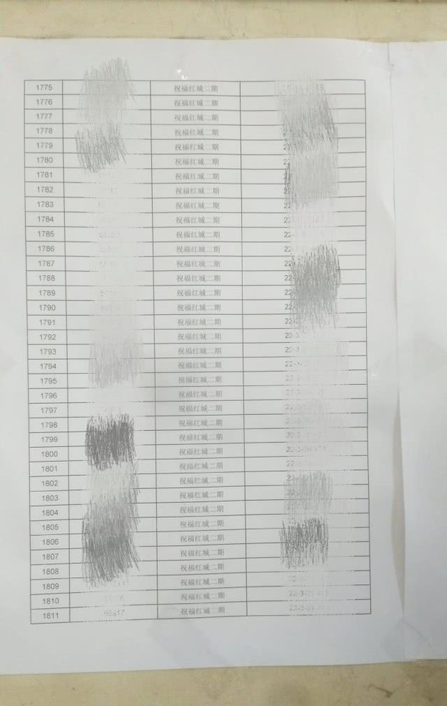 祝福红城二期各户供暖编号公示单