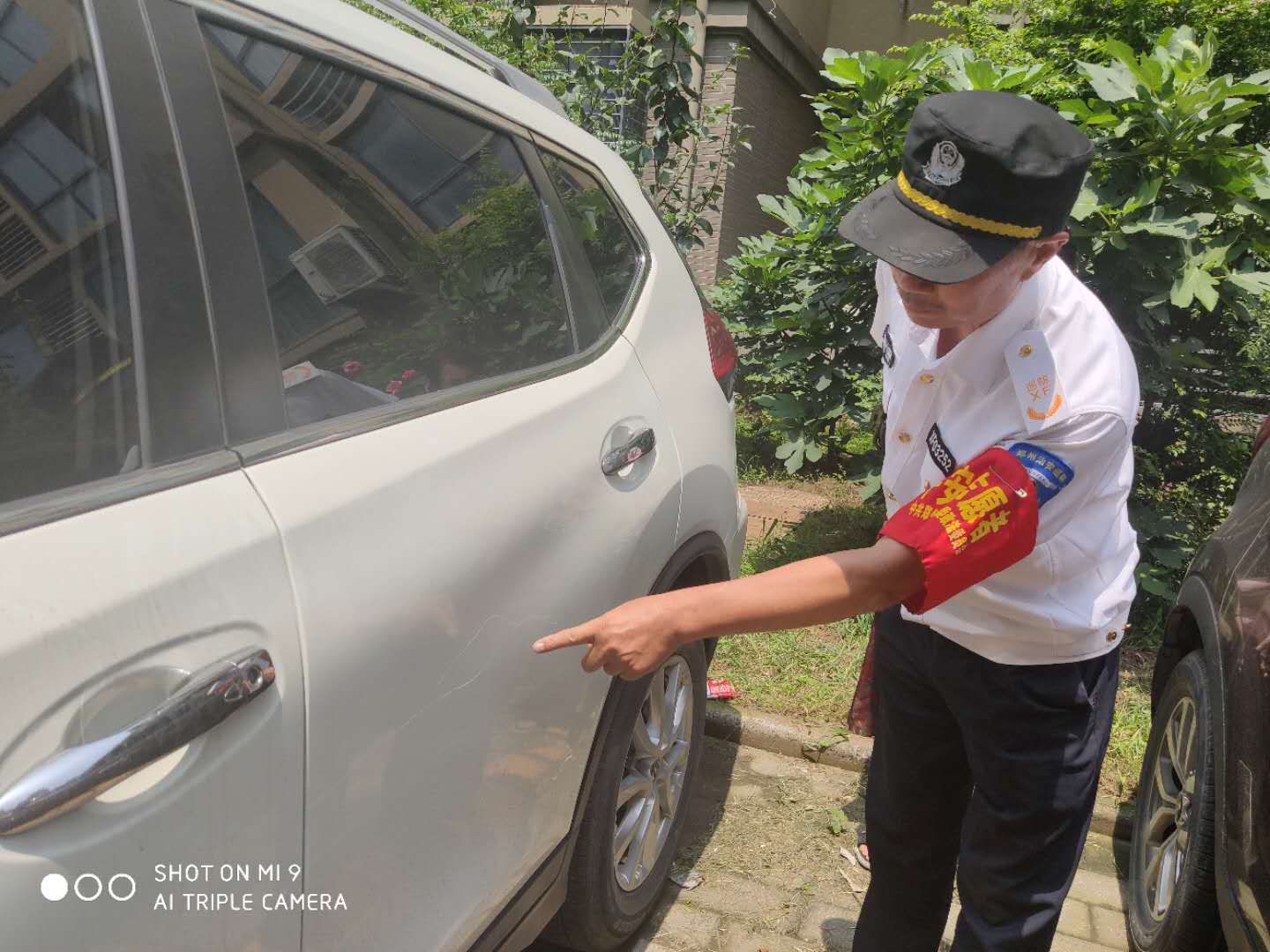 7月23日上午10点钟左右,中原区绿东村巡防中队巡防员李高学和队友巡逻至陇海路379号院7号楼下时注意到,几位居民聚集在一辆白色汽车旁,议论纷纷。上前观察,原来这辆车子停泊在车位里,四个车门却被人划伤了。划伤痕迹明显,车子底部的底漆露了出来。