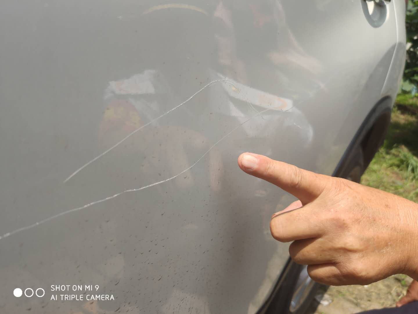 气愤! 私家车停泊车位上 四个车门被人划伤