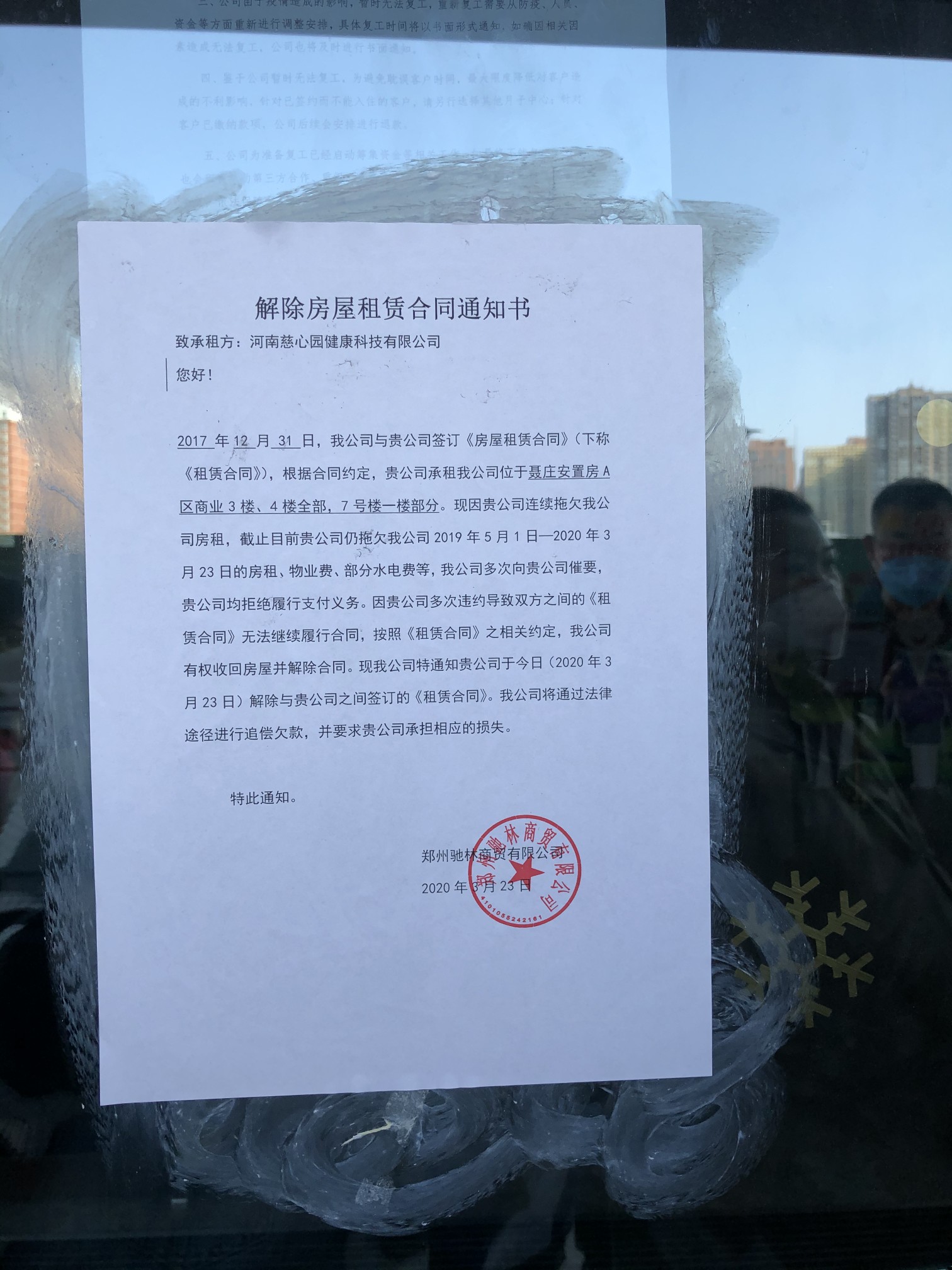 就在采访结束时,一张《解除房屋租赁合同通知书》又贴在了慈心园大门上。房东称:“去年5月1日至今的房租、物业、部分水电费用经多次催要,慈心园均拒绝支付,今天起解除和慈心园的房租合同。”