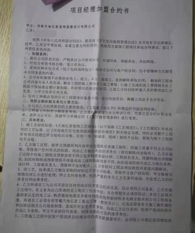 此外,河南商报记者了解到,全家福的部分施工项目是通过分包的形式,由40名项目经理(或称工长)负责。根据今年7月全家福公司财务提供的一份欠款及在建工地明细显示,全家福公司对项目经理的总欠款共计达300万左右。根据项目经理加盟合约书显示,工程款和人工费将根据工程进度分次发放,然而项目经理们却表示,全家福公司均未如约发放。