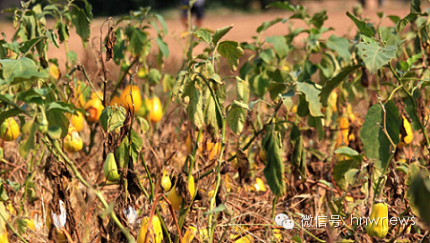 7月30日在河南省周口市川汇区城北办事处拍摄的干枯的茄苗。
