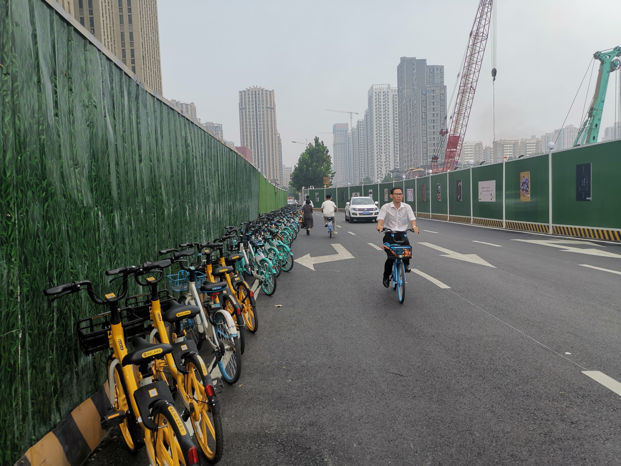 “附近300米范围内,郑汴路往西的人行道上,机动道与非机动车道之间的硬化隔离台上,还有未来路往北的人行道上,这些地方都可以停车,而且有的地上还画有停车标志,可却没人停!”受访市民孙先生说,他也经常骑共享单车,在共享单车手机使用页面上,他看到过禁有不少区域是止停放的共享单车的,如果有人将车停放在禁停区域就会被罚款。所以,他想建议相关部门,能否将此处设置为共享单车临时禁停区域,引流共享单车到他所说的附近道路停放,等施工结束,道路恢复后,再取消禁停?