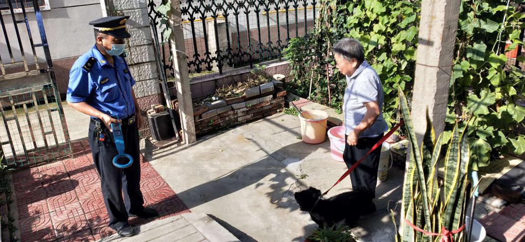 接到投诉后,林办中队负责人郭浩迅速带领执法队员前往投诉地点了解情况。经上门询问查看,了解到此户户主是一名80多岁的老人,养狗是为了给自己作伴,并且养狗证件齐全。随后,林办中队执法队员向老人详细说明了狗吠声影响到了附近即将高考的孩子学习。老人表示十分理解,并且主动表示会将狗拴在屋子里,平时也会尽量约束狗吠,尽量减少扰民。