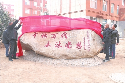 ②朱阳镇幸福家园安置点设立“吃水不忘挖井人,脱贫攻坚感党恩”纪念石,建设“滴水之恩、涌泉相报”水景、感恩亭、幸福长廊等景观,让贫困群众知党恩、感党恩。