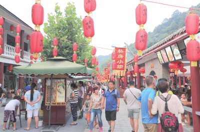栾川重渡沟景区步行街上,游客熙熙攘攘。该县围绕“旅游富县”发展战略,通过“公司+村组+农户”运作模式,走出了一条乡村旅游富百姓的新路子