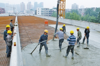 昨天中午,在农业路与桐柏路交叉口西侧农业路高架工地,记者看到一派繁忙景象:伴随泵车轰鸣,数十名工人正忙着用混凝土铺装桥面。“赶工期,我们把这一段铺装完再吃饭。”来自许昌的高东坡说,工友们每天大约忙10个小时,轮流吃饭“打桥面”。
