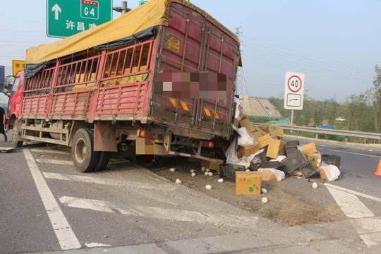 接到报警后,河南省公安厅高速总队一支队事故民警第一时间赶到事发现场勘查处理,大货车运输的整箱水果散落一地,事发处设置的高速公路专用防撞击装置严重损毁,所幸事故中未造成人员伤亡。
