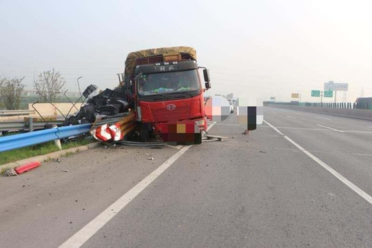 凌晨大货车司机开车不看路标,车撞护栏造成经济损失4万多元