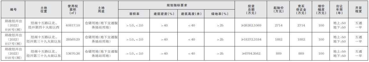 【大河财立方消息】9月30日,中牟县自然资源和规划局、郑州市自然资源和规划局经开分局发布公告,决定以网上挂牌方式出让郑政经开出〔2022〕016号(网)、郑政经开出〔2022〕017号(网)、 郑政经开出〔2022〕018号(网)地块的国有建设用地使用权。