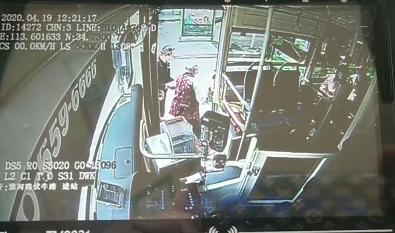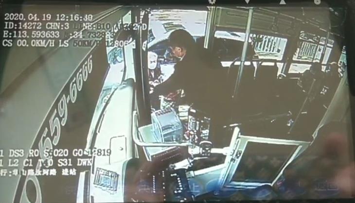 视频显示,4月19日12时07分许,郑州公交三公司B10路车长柴志伟驾车驶入淮河路华山路站,将车停稳拉好手刹后等待乘客上下车。