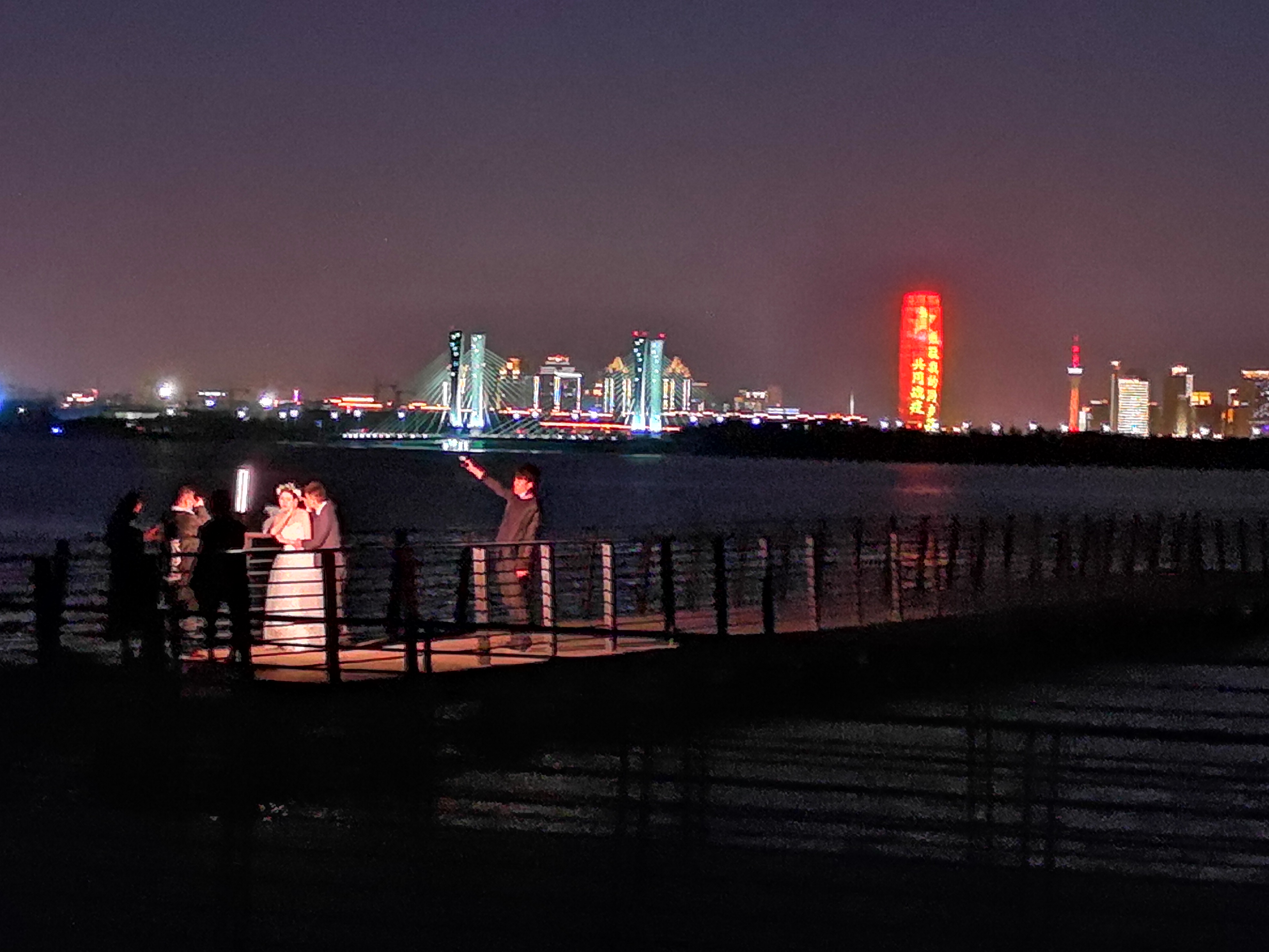 走访中,记者发现,北龙湖内一处延伸到水中的木桥上,五六个人围坐在一起,有说有笑,摆放很多食物,在聚餐。