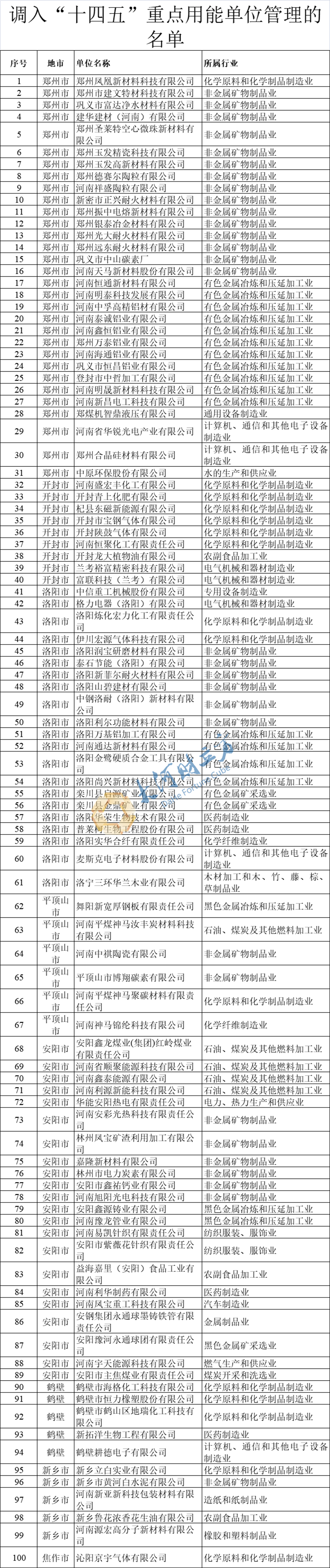 公示信息称,经各有关企业报送年度能源消费报告、各省辖市和济源示范区发展改革部门初审,并征求相关单位意见,形成了“十四五”重点用能单位名单,共计912家。其中,调入能源消费量超过5000吨标准煤的企业198家;调出停产企业、变更能源消费统计主体企业或连续三年能源消费量低于5000吨标准煤的企业120家。