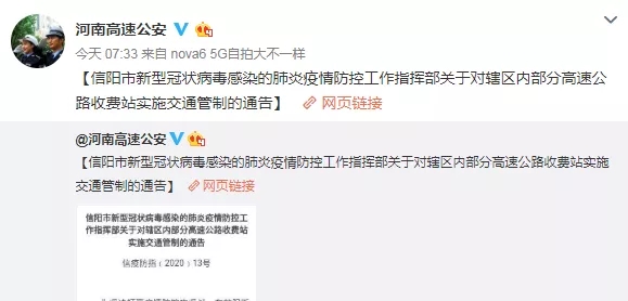 信阳市新型冠状病毒感染的肺炎疫情防控工作指挥部关于对辖区内部分高速公路收费站实施交通管制的通告