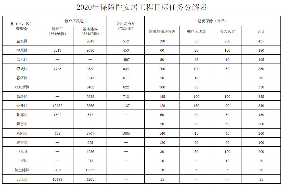 和你有关!郑州2020年计划新开工建设棚户区改造安置房5.6万套丨附16县区任务分解表
