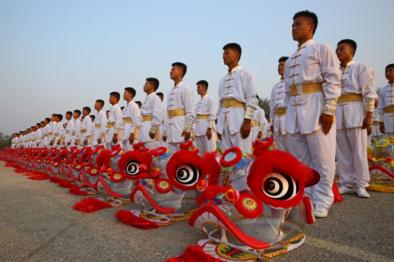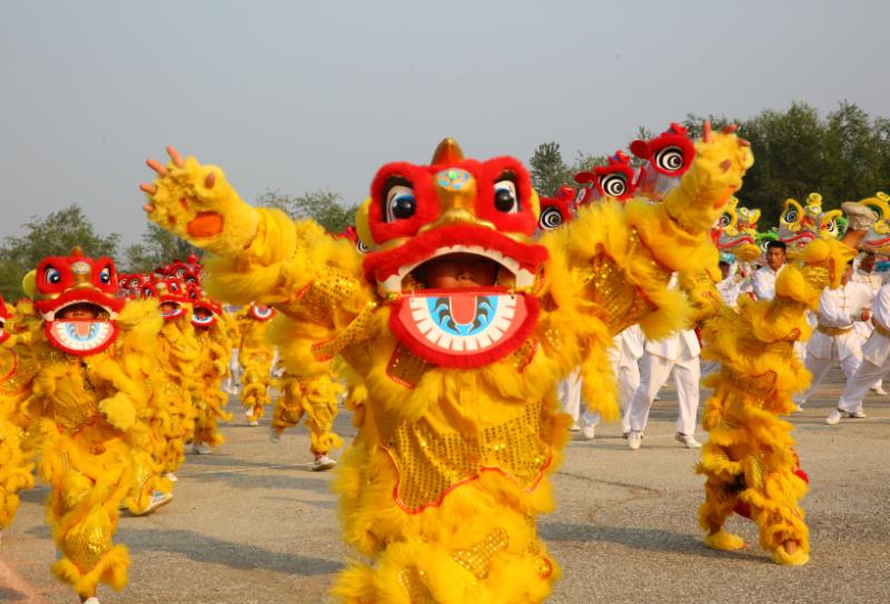 10月1日上午,庆祝中华人民共和国成立70周年大会在北京天安门广场隆重举行。大会包括庆祝仪式、阅兵、群众游行三项内容,其中群众游行活动以“同心共筑中国梦”为主题,约10万名群众、70组彩车组成36个方阵和3个情境式行进,沿长安街由东向西通过天安门核心区。来自河南少林塔沟武校的1080名师生,参加了“情境2”《东方雄狮》节目的演出,以蓬勃向上、富有活力的舞狮表演向新中国七十华诞献礼。