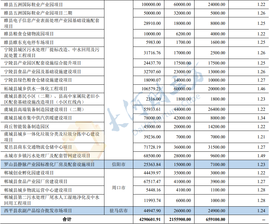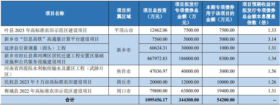 2023年河南省城乡发展专项债券(九期)募投项目情况