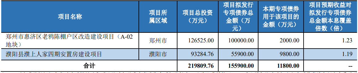 2023年河南省棚改专项债券(八期)募投项目情况