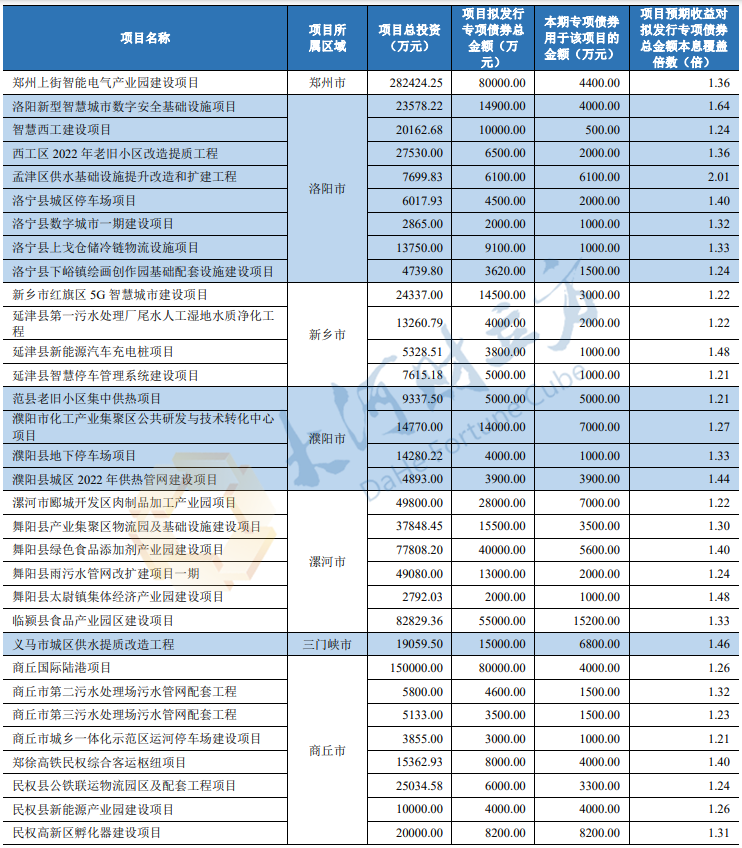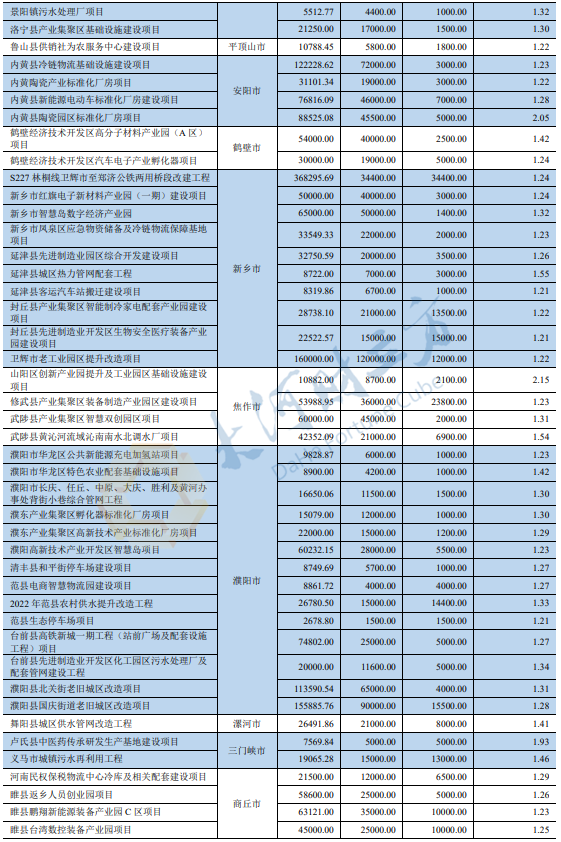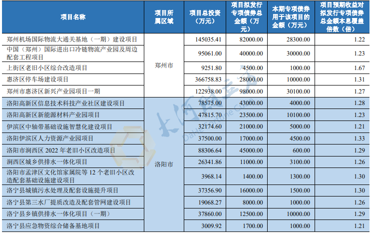 2023年河南省城乡发展专项债券(十期)募投项目情况