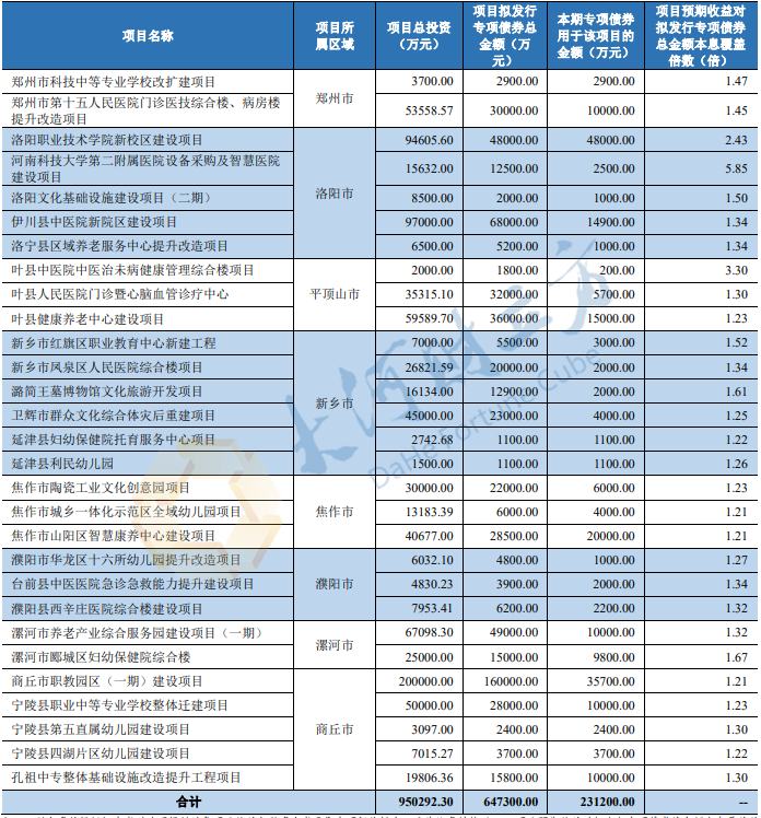 2023年河南省社会事业专项债券(八期)募投项目情况