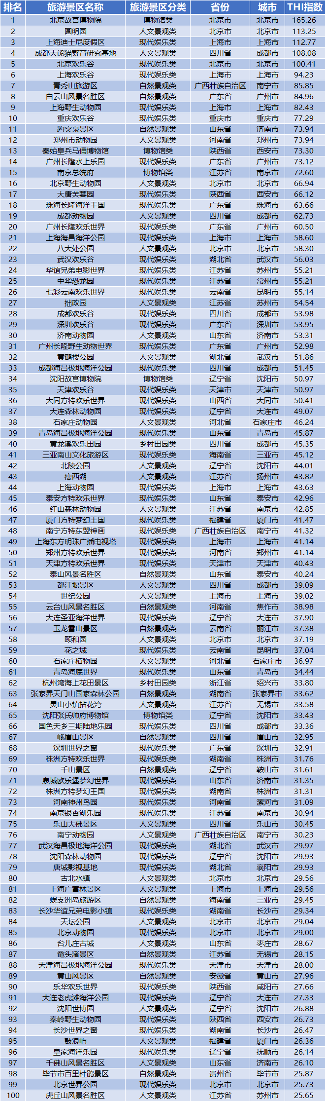 ▲2020中国旅游景区欢乐指数(THI)五月排名TOP100