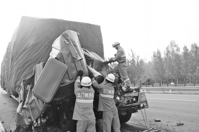 灵宝高速两车追尾司机被困驾驶室 消防员托举20分钟
