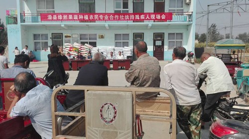 滑县绿然果疏种植农民专业合作社免费为残疾人家庭发放化肥