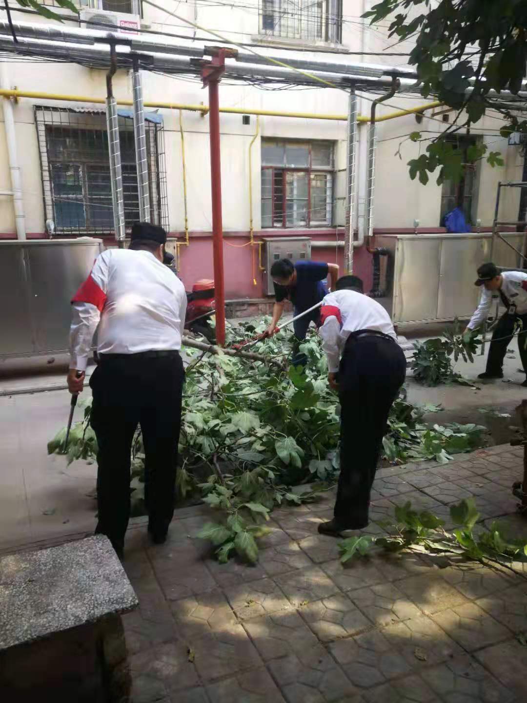 隐患排除后,队员又及时对院内内残留的小树枝进行彻底清理,使道路恢复顺畅。