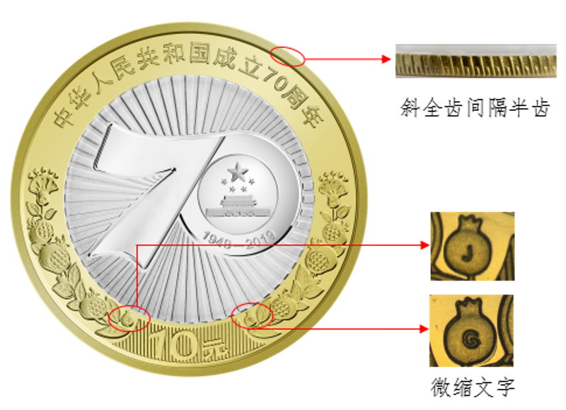4.中华人民共和国成立70周年双色铜合金纪念币公众防伪特征