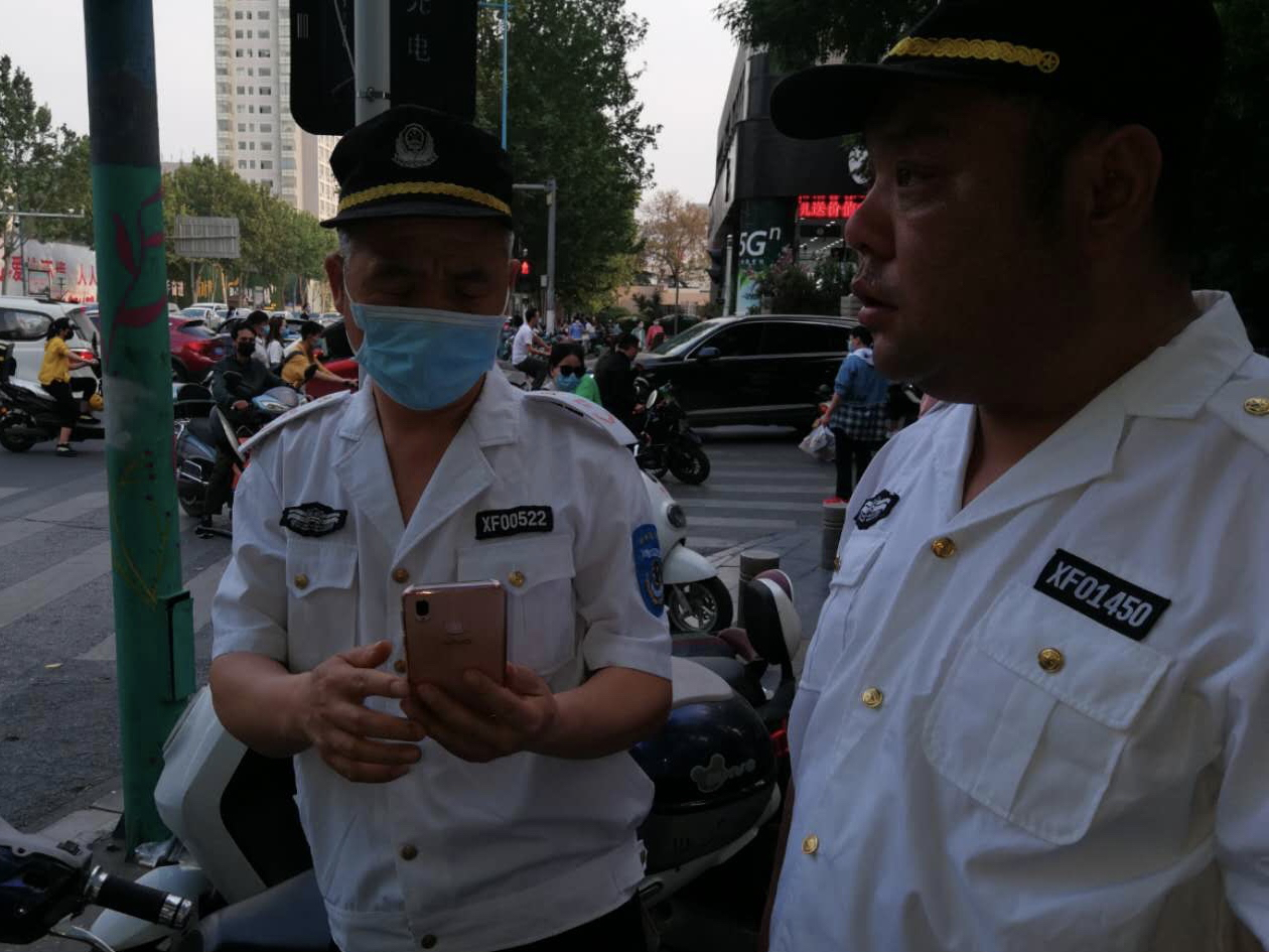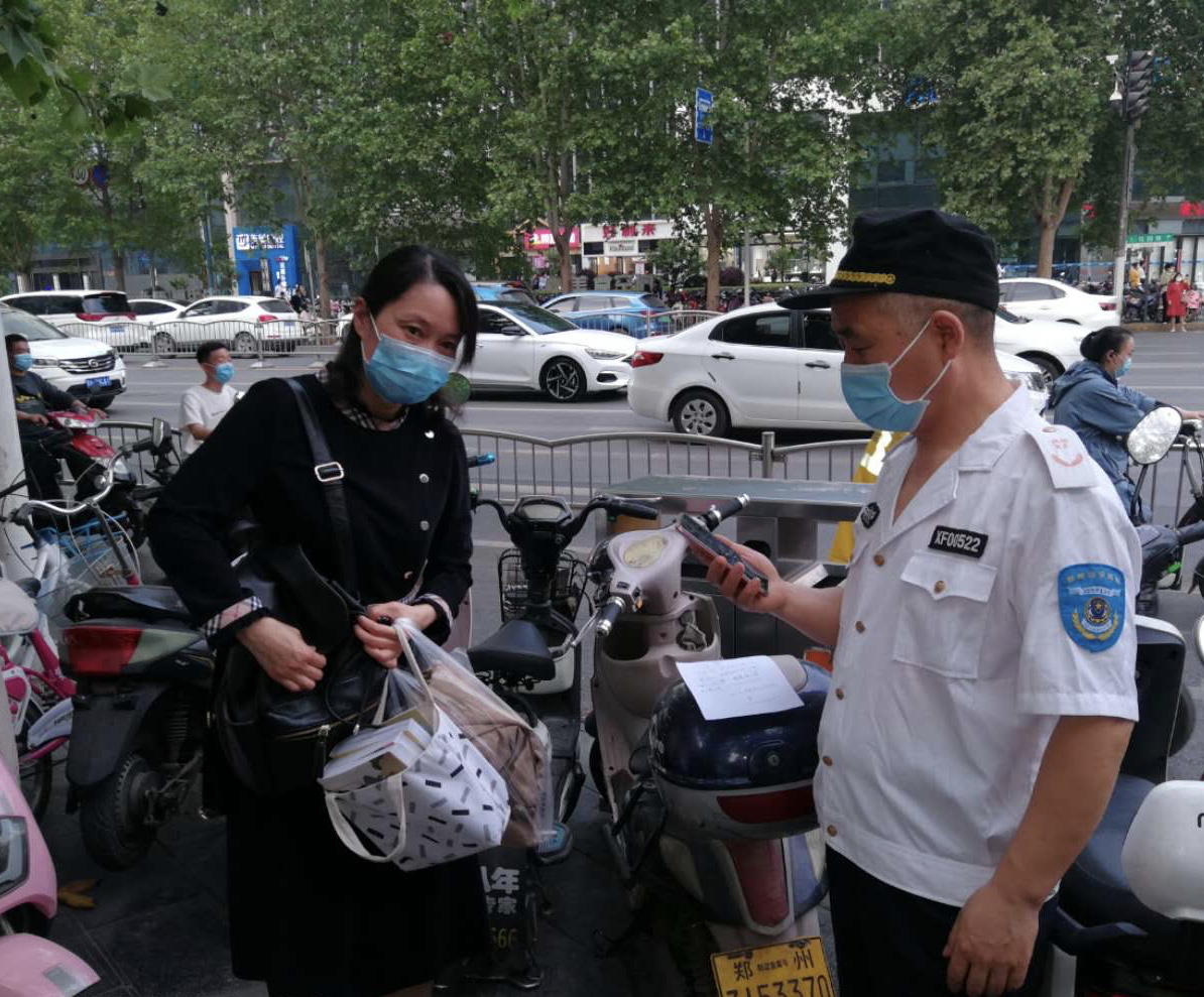 昨天晚上6点30分,郑州市金水区文化路街道办事处巡防队员刘金句、朱增强、李想三人,巡逻到花园路与丰产路交叉口时,发现西北角停放的一辆电动车车筐里,有一部vivo手机。队员拿起手机,见手机设有屏保密码,无法查看里面的信息,只好在原地等待。