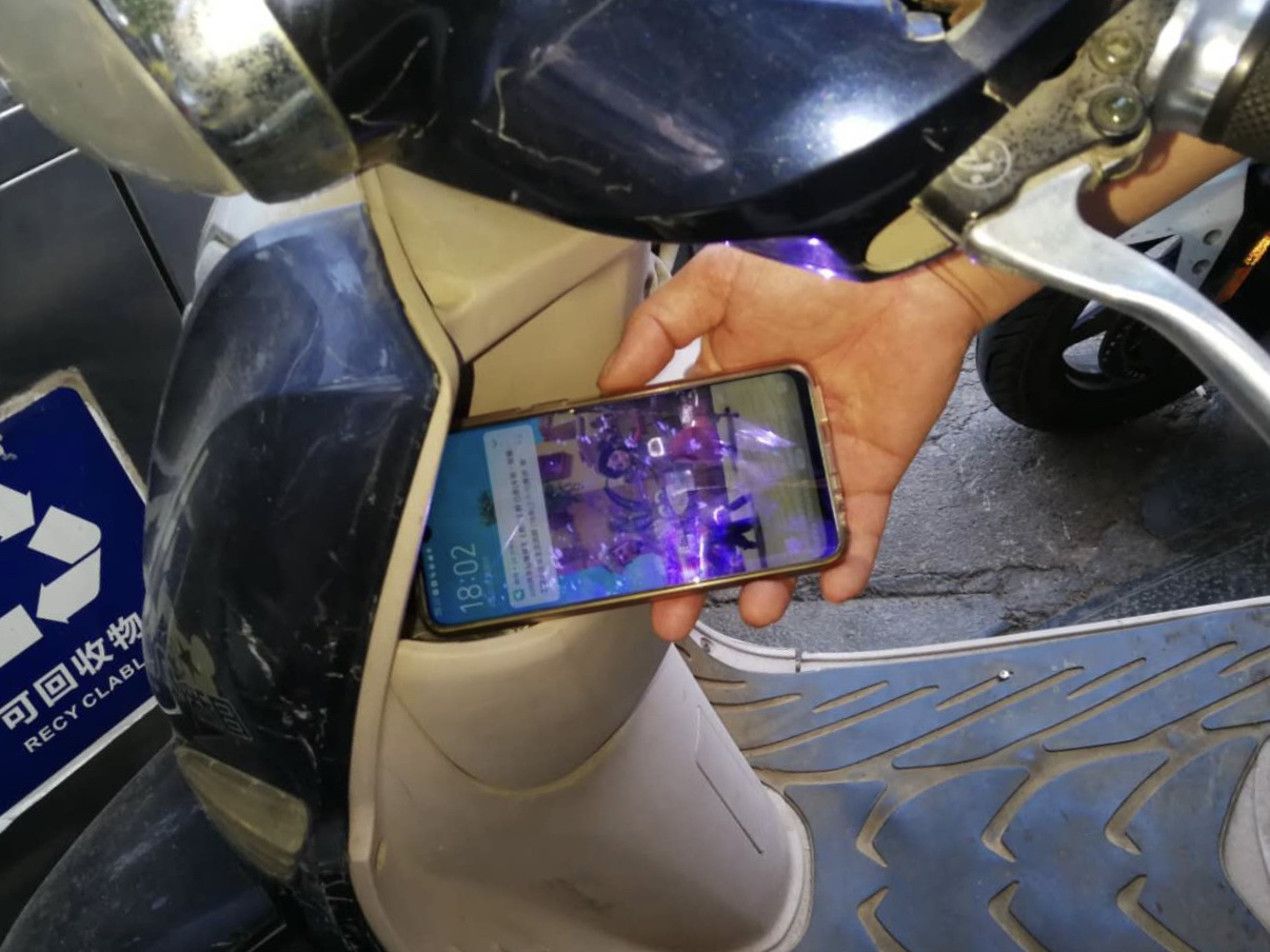 女子看见队员忙问他们是否看见车楼里有手机,队员向明情况后,将手机还给了她。女子说,刚才去商场买东西,天热也比较急,在此停车离开把手机忘到车篓里了。到了商场买好东西准备付钱的时候,才发现手机没了,当是吓坏了,一路小跑到电动前查看。