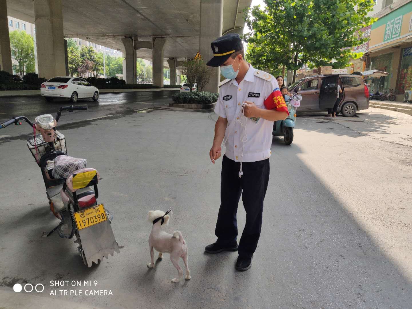 6月25日上午9点钟左右,在郑州市中原区街头,市民张文胜手里牵条狗,沿街转悠,寻找主人。