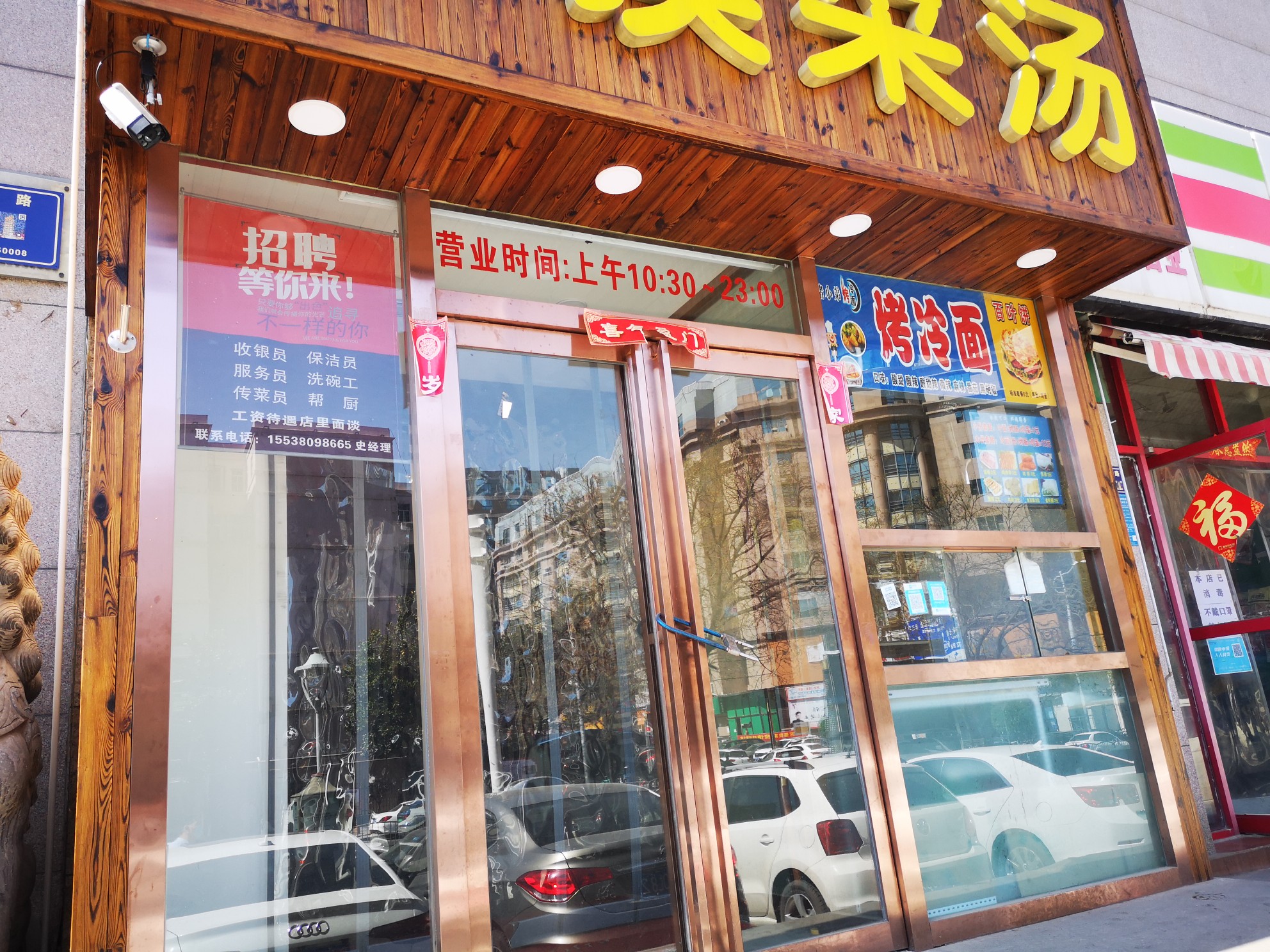 经三路上的一家餐馆,这里此前顾客络绎不绝,可是当天记者探访时,仍大门禁闭,没有开门营业,旁边张贴有招工海报。