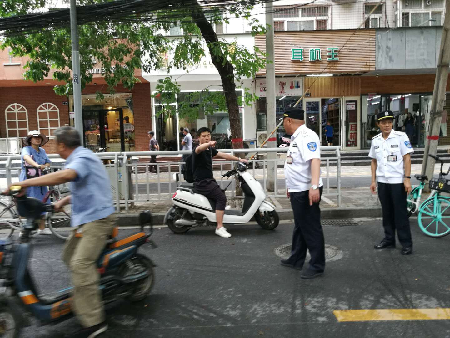 今天下午1时50分左右,金水区文化路办事处巡防队员陶乐、朱增强、李亚飞等人,巡逻到俭学街与文化路交叉口西约100米处,发现一棵行道树枝中间的高压线起火,把树枝引燃,并冒出黑烟。为避免发生意外,队员们赶紧上前,在周围拉起警戒线,指挥行人和车辆绕行,并拨打119。