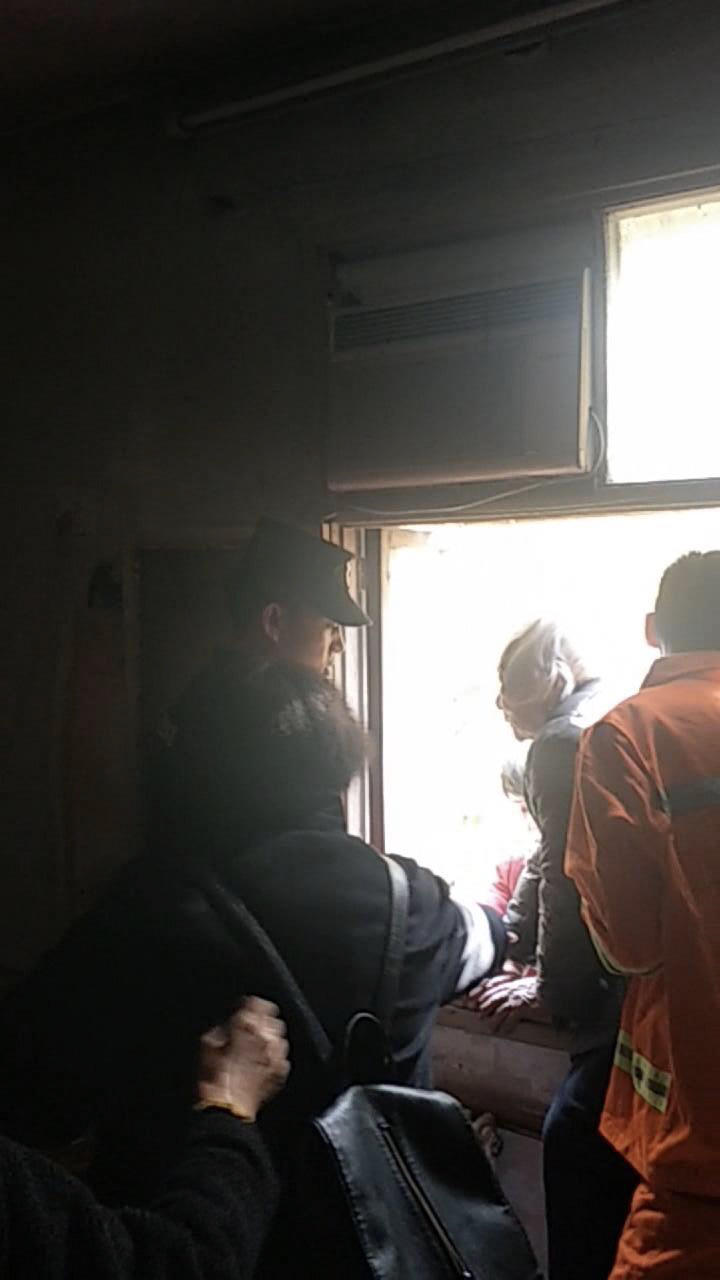 时间一分一分地过去,空气中充满了紧张的气息,围在楼下的群众都在为老人和小伙子捏把汗,尤其是小伙的同事,不时在下面提醒着小伙子注意安全,一定要抓紧窗框,防止脚下的防盗网突然坍塌。在楼下维持秩序的中原区建设路办事处巡防队员龙腾和尹雪强也很紧张,他们担心围观群众的大声叫喊会吓到窗台上的老人,一边劝阻一边报警。