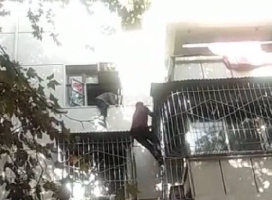 11月19日中午,一名住在郑州市协作路19号院3号楼4楼的87岁老太太,独自坐在窗台上晒太阳时,腿脚突然不听使唤,被困在窗外。路过楼下的一名移动公司的维修人员见状,奋不顾身顺着楼外的防盗窗爬上四楼,用身体紧紧托护住老人,直到10分钟后消防官兵赶到进入老人家中,将老人从窗外抱进屋里,小伙才松了口气。