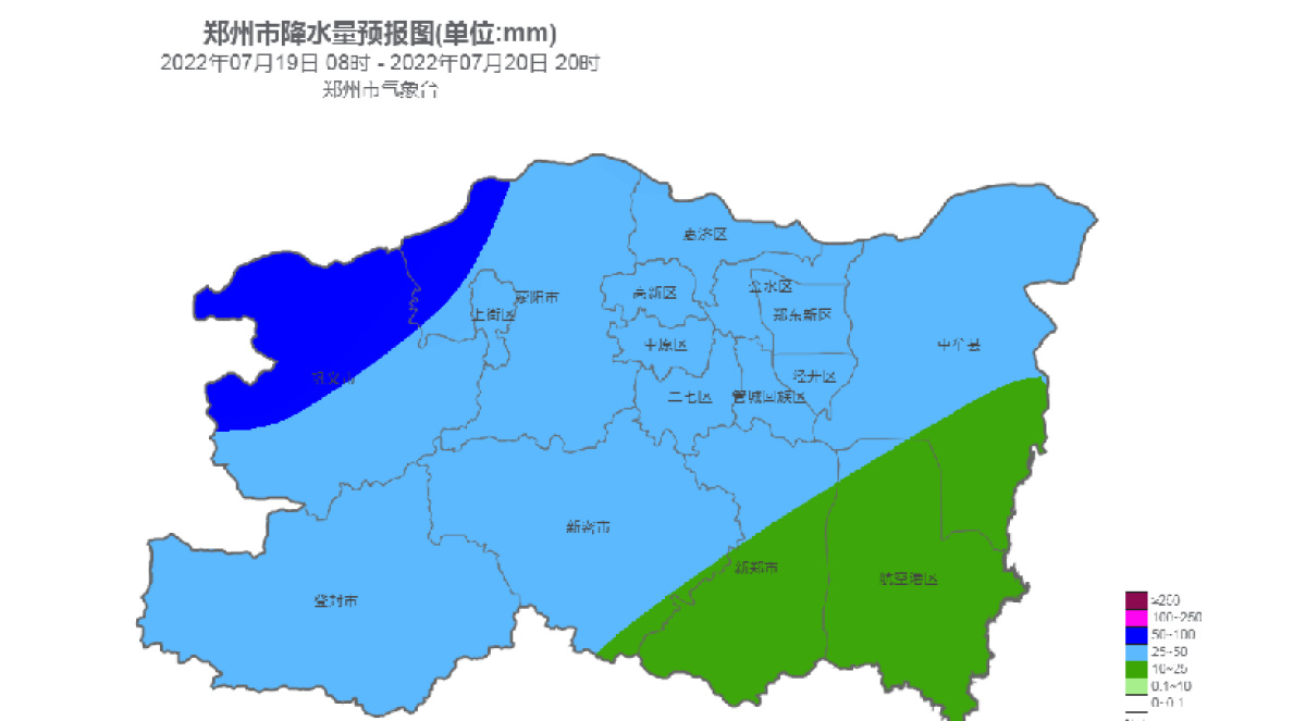 根据郑州市气象台最新预测,19日夜里到20日白天郑州市有大雨,局部暴雨,伴有短时强降水、雷暴大风等强对流天气。
