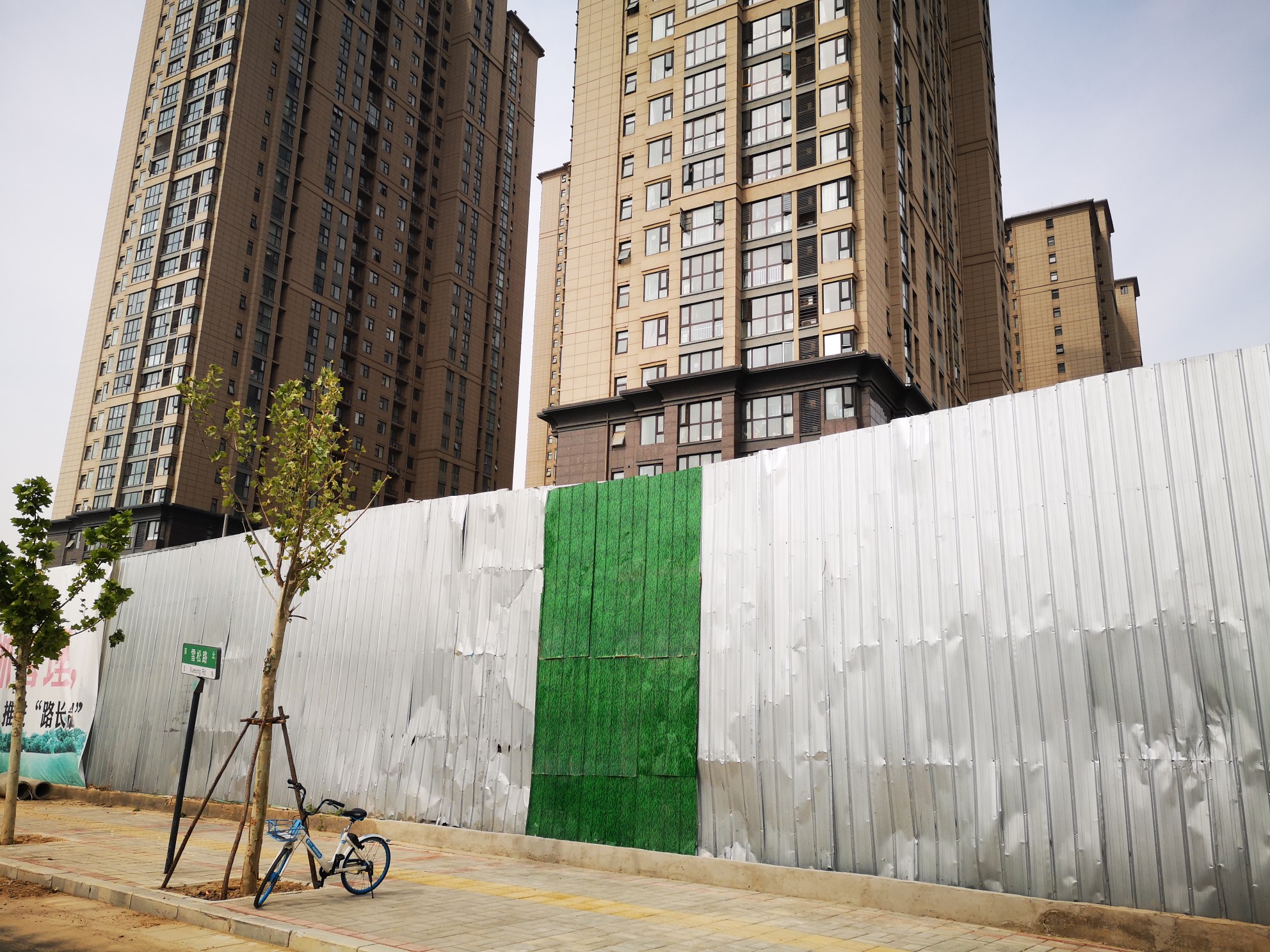 4月23日上午,大河报•大河客户端记者来到了位于高新区雪松路和药厂街交叉口附近的祝福红城五号院,在小区东侧铁栅栏外,就是一排约五六米高的围挡,一直向南300米左右。
