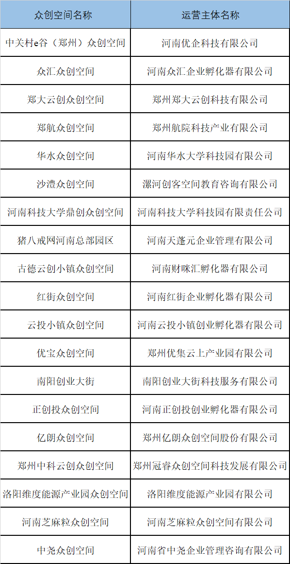 附19家新增众创空间名单