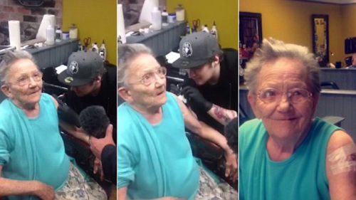 据报道,已经拥有11个孙子的79岁老奶奶赛勒斯(Sadie Sellers)发现22岁孙女手上的纹身后,相当地喜爱,开始有了想要纹身的想法。