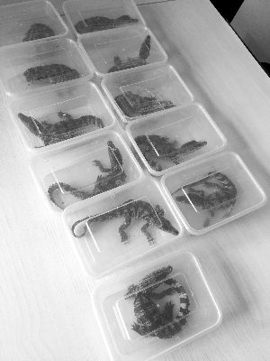 《邮政法实施细则》有明确规定,任何活物都是不允许通过邮寄方式运输的。因此,小张忙拨打了110报警电话,请警方来处理。宿迁市经济技术开发区公安分局黄河派出所民警孟星宇赶到现场,并与收件人司某取得联系。待司某赶到后,孟星宇将包裹拆封,赫然发现纸箱中装着11条约20厘米长的鳄鱼幼苗。这些小鳄鱼分别被装在11个透明餐盒里。