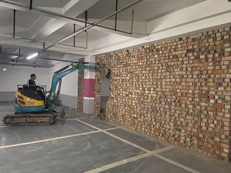 4月29日,金耀办事处城建部门联合市综合执法局、区综合执法局对西湖花园地下停车场违法建设进行依法强制拆除。