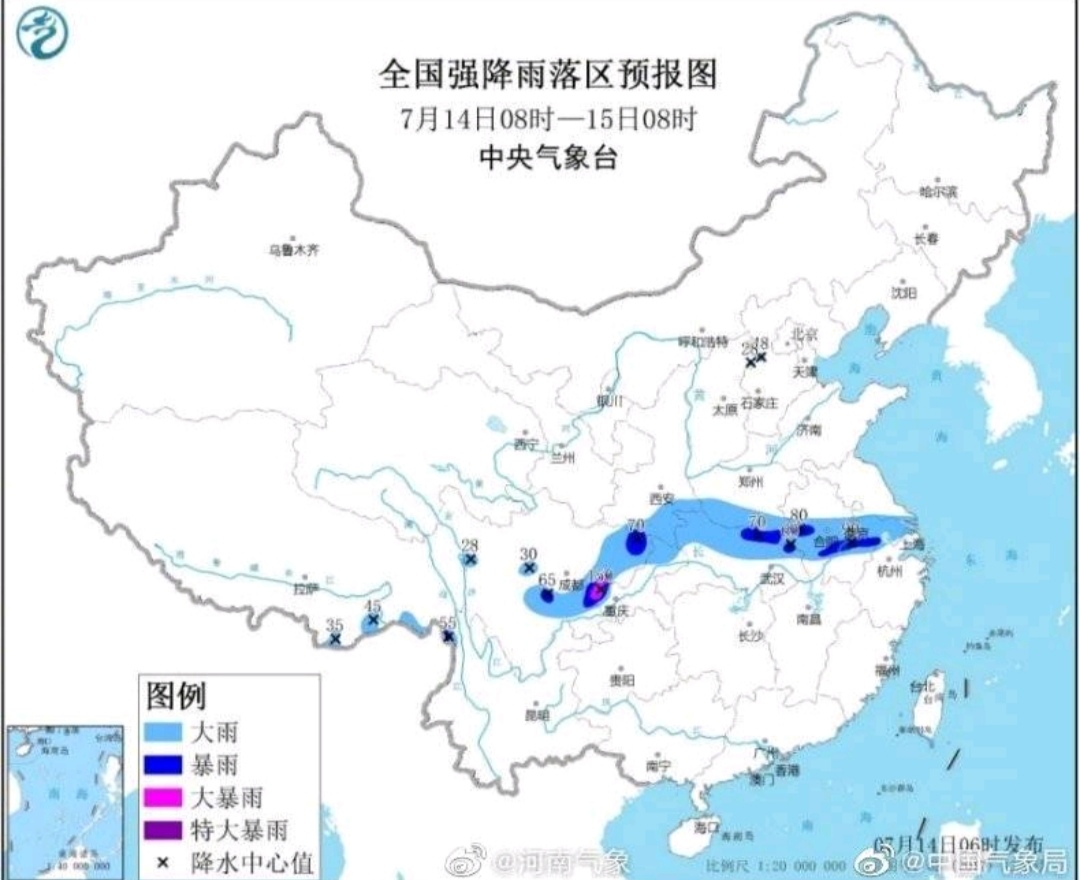 此次强降水天气过程暴雨、大暴雨落区位于南部、东南部,与前期强降水落区重叠度高,预计16日前主雨带位于长江流域,我省南部处于主雨带边缘,多阵雨天气,局部有大雨或暴雨。各地需加强防范南部局地强降雨可能引发的山洪和地质灾害,关注中小河流洪水及水库的防汛工作,防范城市内涝及农田积涝。