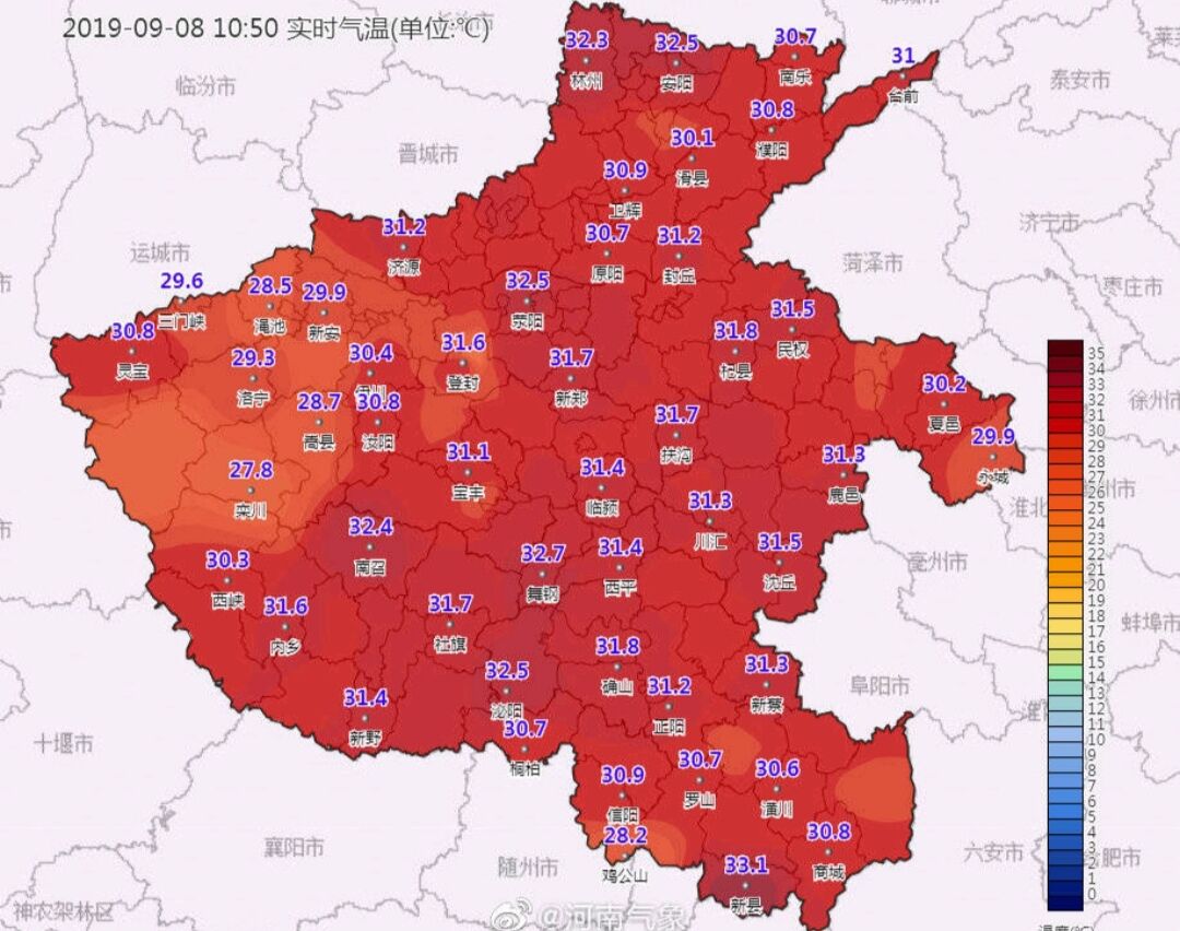 大河报记者了解到,虽然今天中午前后我省高温区域有限,郑州也不过是33℃左右。但全省来看,我省绝大部分地区今天上午11时的气温已经突破30℃,可见温度还是比较高的。