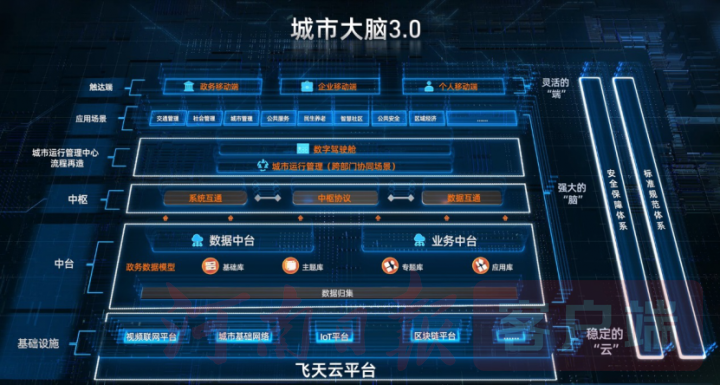 依托阿里“飞天云”技术架构,郑州市“城市大脑”项目一期已部署完成,建设了600台服务器构成的统一政务云平台,建成涵盖统一大数据计算平台、视觉计算平台、物联网平台、区块链平台、数据中台、业务中台等六大数字城市基础设施平台;二期着力构建全方位智能业务应用,涵盖政务服务、城市管理、生态环境、交通出行、医疗健康、文化旅游、应急管理、市场监管等14个部门、18个业务领域智慧模块,预计今年9月底初步完成。