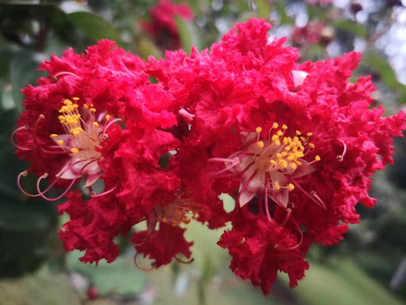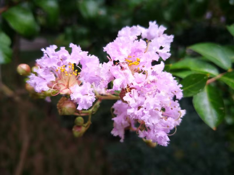 长亭中,一名小女孩跟紫薇花合影拍照,花儿般的年纪,洋溢着精巧而脱俗的气息。微风吹拂,紫薇花一朵一朵的组成一个小花球,听风低语,绽放着属于自己的那份美丽。